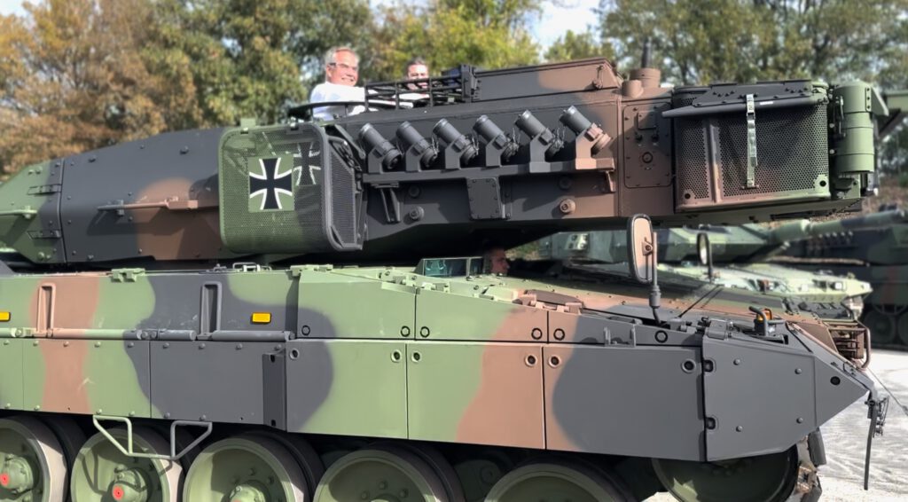 Wir besitzen hierfür zwei Lösungen. Zum einen haben wir für Schweden und Griechenland einen wirklich schweren Schutz gegen Artilleriegeschosse realisiert, die Hohlladungen verschießen. Das ist aber ein wirklich schwerer Schutz. Dann haben wir noch das Trophy- Selbstschutzsystem, das nun auch einige deutsche Leoparden erhalten werden. Auch dieses bietet einen gewissen Schutz gegen Drohnen. Aber wirklich ausreichend sind beide Lösungen nicht.
