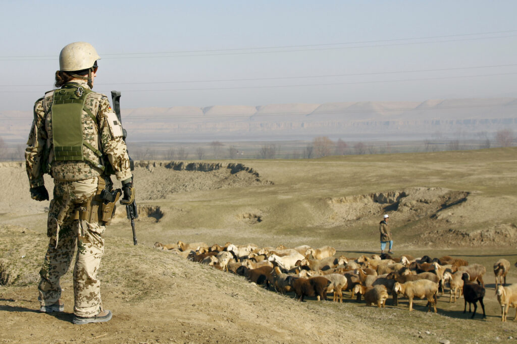 (r.) Feldjägerin bei der Vorfeldbeobachtung im Einsatzland Afghanistan.