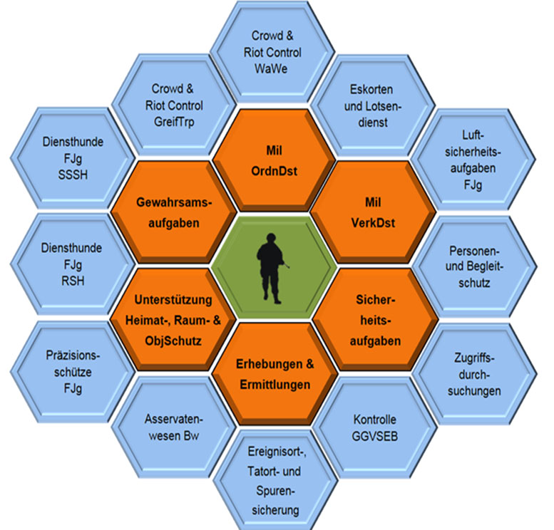 Der „personelle Mehrwert“ dieser Dreifachrolle zeigt sich in der Flexibilität im Einsatz. Vom Grundbetrieb, über internationale Krisen sowie das nationale Risiko und Krisenmanagement bis hin zur Landes und Bündnisverteidigung sind Feldjäger szenar und lageabhängig flexibel einsetzbar und entfalten damit Wirksamkeit in allen Szenaren und Intensitäten.