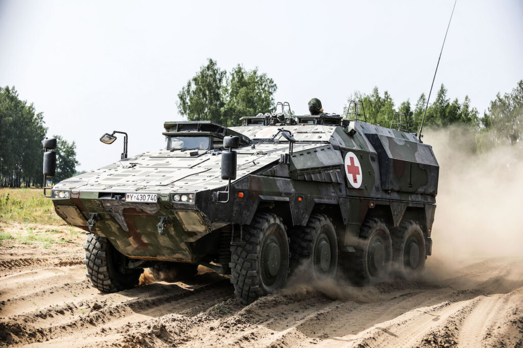 (l.) GTK BOXER Sanität auf einer Übung bei der Enhanced Forward Presence Battlegroup in Rukla/Litauen.