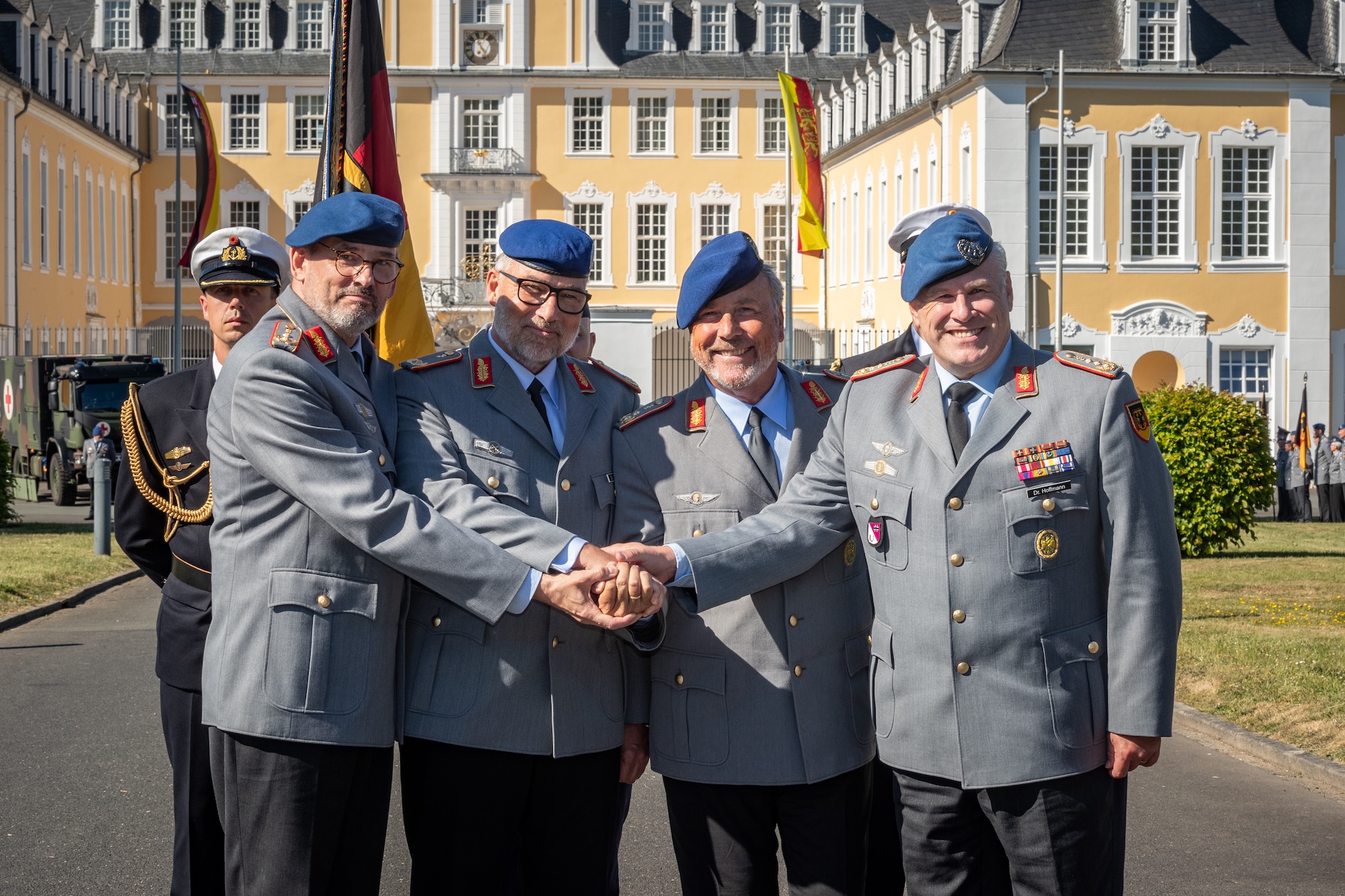 Auch für die Hilfeleistung während der Ahrflut zeichnete der scheidende Kommandeur verantwortlich. Nach 44 Dienstjahren beendet der Appell seine aktive Dienstzeit. Zu Ehren des scheidenden Generalstabsarztes Dr. Armin Kalinowski erfolgte im Anschluss des Appells eine Serenade.