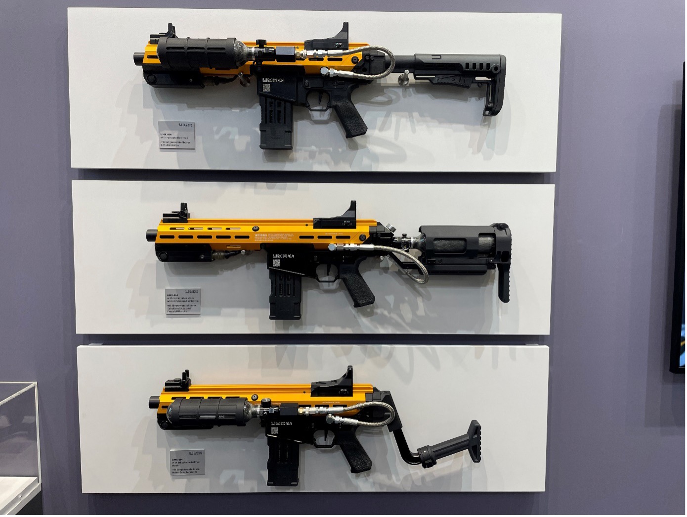 Auf der Enforce Tac 2024 in Nürnberg stellte der Druckluftwaffenhersteller Umarex aus Arnsberg – gehört wie Carl Walther zur PW Group – das neue Less-Lethal-Distanzwirkmittel UMX414 vor. Das Besondere an dieser Waffe im Kaliber 18 mm ist, dass das Projektil im Ziel immer 30 Joule hat. Bei anderen Waffen dieser Art beträgt die Energie bei Abschuss 30 Joule und nimmt dann mit der Distanz immer weiter ab. Das liegt daran, dass die Abschussenergie immer gleich ist und nicht an die Entfernung angepasst wird.