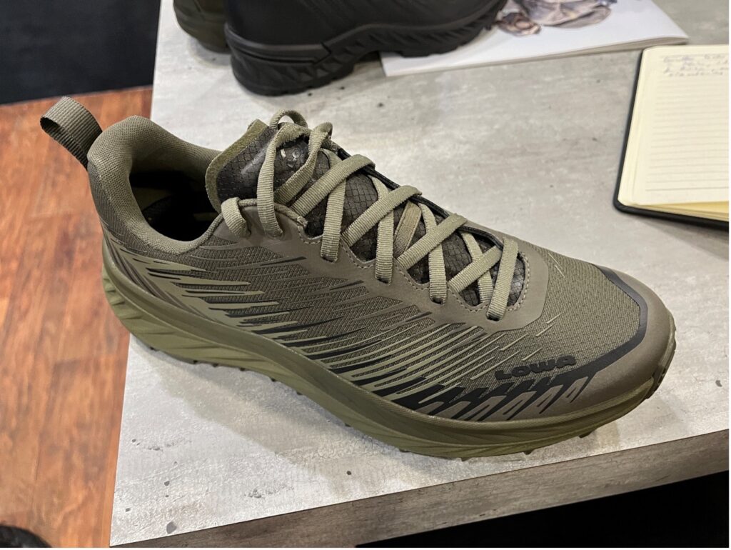 Der Lowa Laufschuh ATR Fortux ist im zivilen Bereich schon länger im Angebot. Er ist für maximalen Komfort bei minimalem Gewicht ausgelegt und soll vor allem für Ultra-Langstrecken genutzt werden. Er zeichnet sich durch das Lowa TRAC Sohlensystem aus, bestehend aus einer Außensohle aus griffigem Gummi und einer besonders ausgeprägten DYNEVA-Zwischensohle, die über die gesamte Schuhlänge einen hohen Rebound-Effekt bietet. Die leicht gebogene Rocker-Konstruktion trägt dazu bei, den bestmöglichen Komfort bei dynamischen und langen Runden zu gewährleisten. Durch das einteilige Obermaterial entfallen unnötige Nähte und somit die Gefahr von Reibungsstellen. In Kombination mit der REPTEX SPORT PU-Beschichtung macht dies den Schuh zudem langlebiger. Eine leichte, nahtlos gefertigte Zunge bietet eine Kombination aus Komfort und Atmungsaktivität.