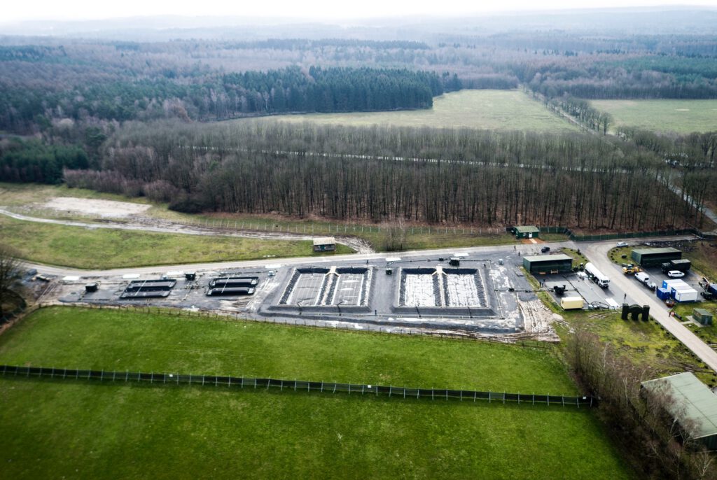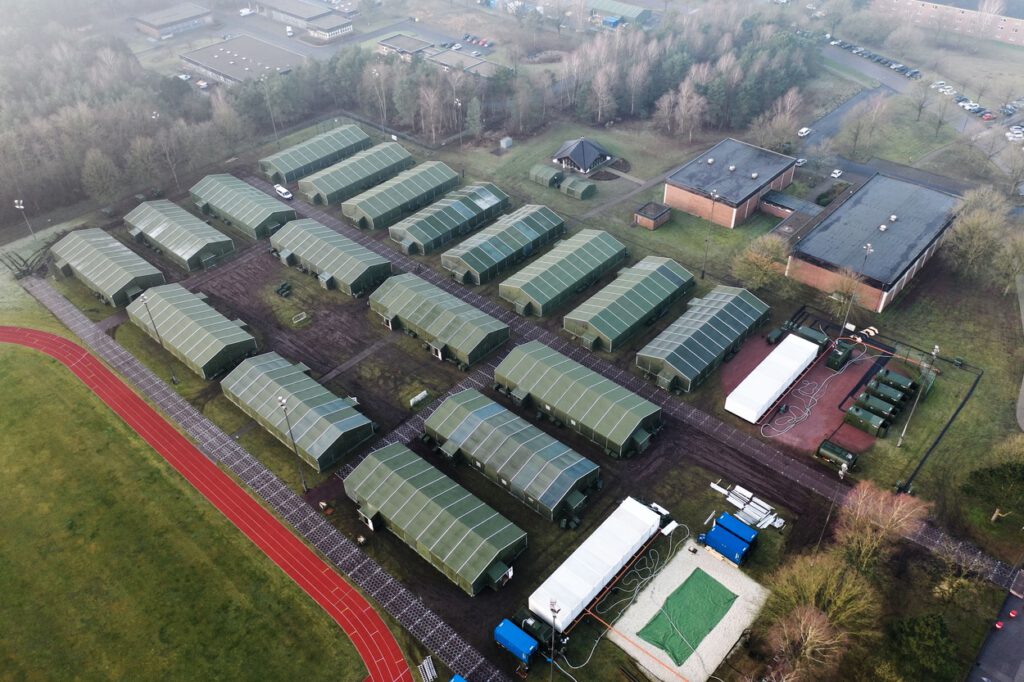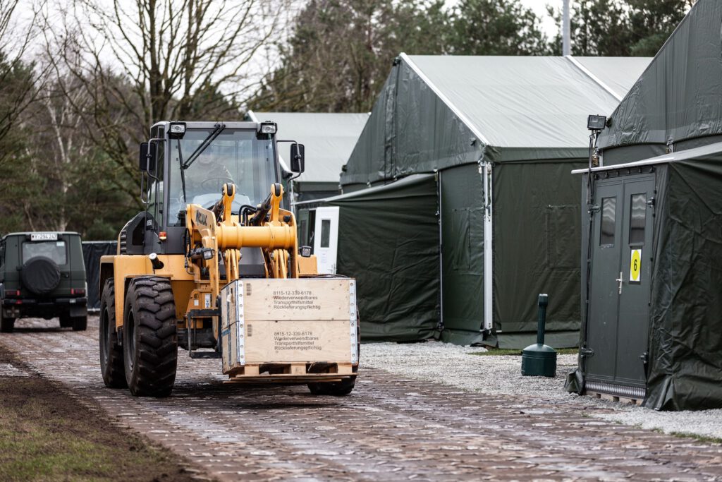 (r.) Das Spezialpionierregiment 164 errichtet ein Zeltlager für die ameri-kanischen Soldaten im Rahmen der Übung Defender Europe 2020 in Garlstedt.